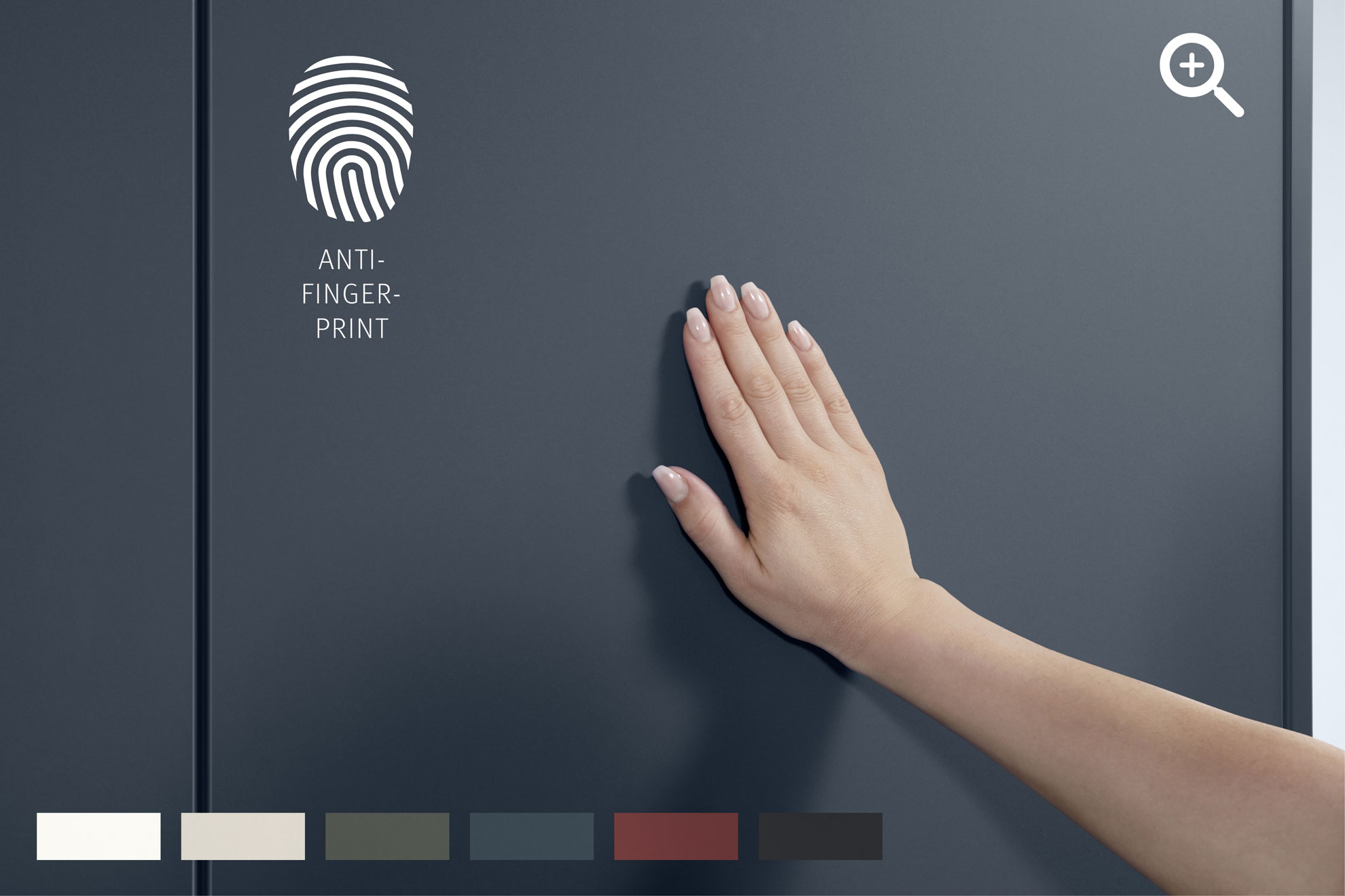 Die ultramatten Oberflächen sind mit einer innovativen „Anti-Fingerprint“-Beschichtung veredelt. Diese reduziert den optischen Kontrast von Flecken und macht viele Spuren von Fingerabdrücken einfach unsichtbar. Damit Ihre Küchenfronten jederzeit strahlen wie frisch geputzt.