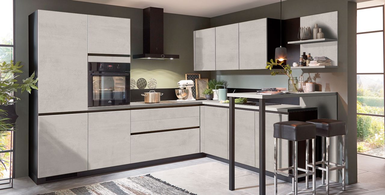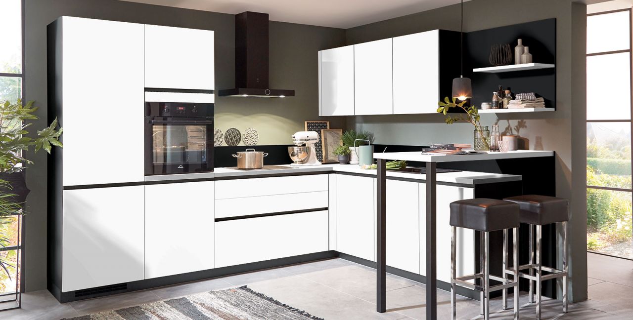 Inklusive Einbaubackofen schwarz Progress PBD34103B Energieeffizienzklasse A, Glaskeramik Kochfeld Progress PAS6001E, Dunstesse Schwarz seidenmatt Elica LOL BL/A/60 Energieeffizienzklasse A, Kühlschrank mit **** Gefrierfach Progress PK1254 Energieeffizienzklasse F, Einbau-Designspüle Schock Mono N-100, XL-Schränken, Unterschrank mit Großraumauszügen, Wandborden, Esstheke.